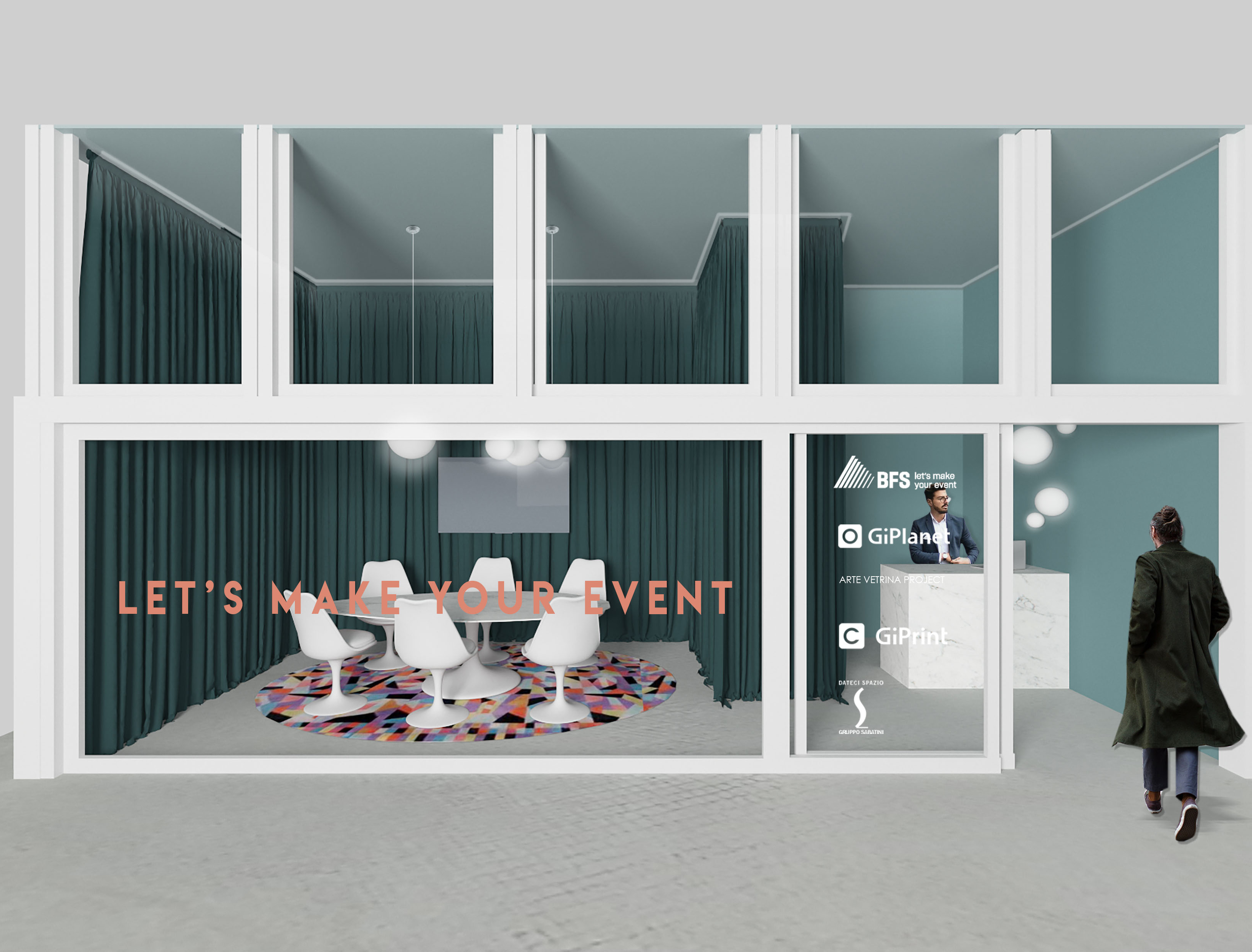 La meeting room realizzata si pone come obiettivo quello di creare una connessione tra gli espositori e tutti i players di BFS volti a progettare, produrre ed allestire ogni tipo di soluzione creativo/progettuale volta ad enfatizzare il prodotto degli espositori stessi, ed allo stesso tempo essere una biblioteca di materiali e servizi da poter presentare alle aziende presenti nelle diverse attività fieristiche.